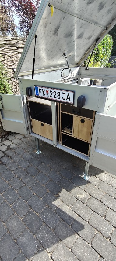 Der NOMADDOG ist ein Umbauprojekt, bei dem ein Hundeanhänger von 1991 zu einem kompakten, energieautarken Campinganhänger mit integrierter Küche, Frischwasserversorgung und modularen Stauraumlösungen umgerüstet wird.